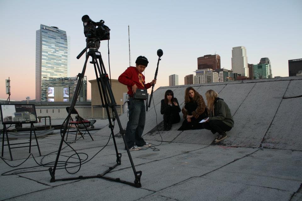 Behind the scenes of Reedy directing her actors Sydney Stephenson and Hilary Anderson, literally, "through the night":